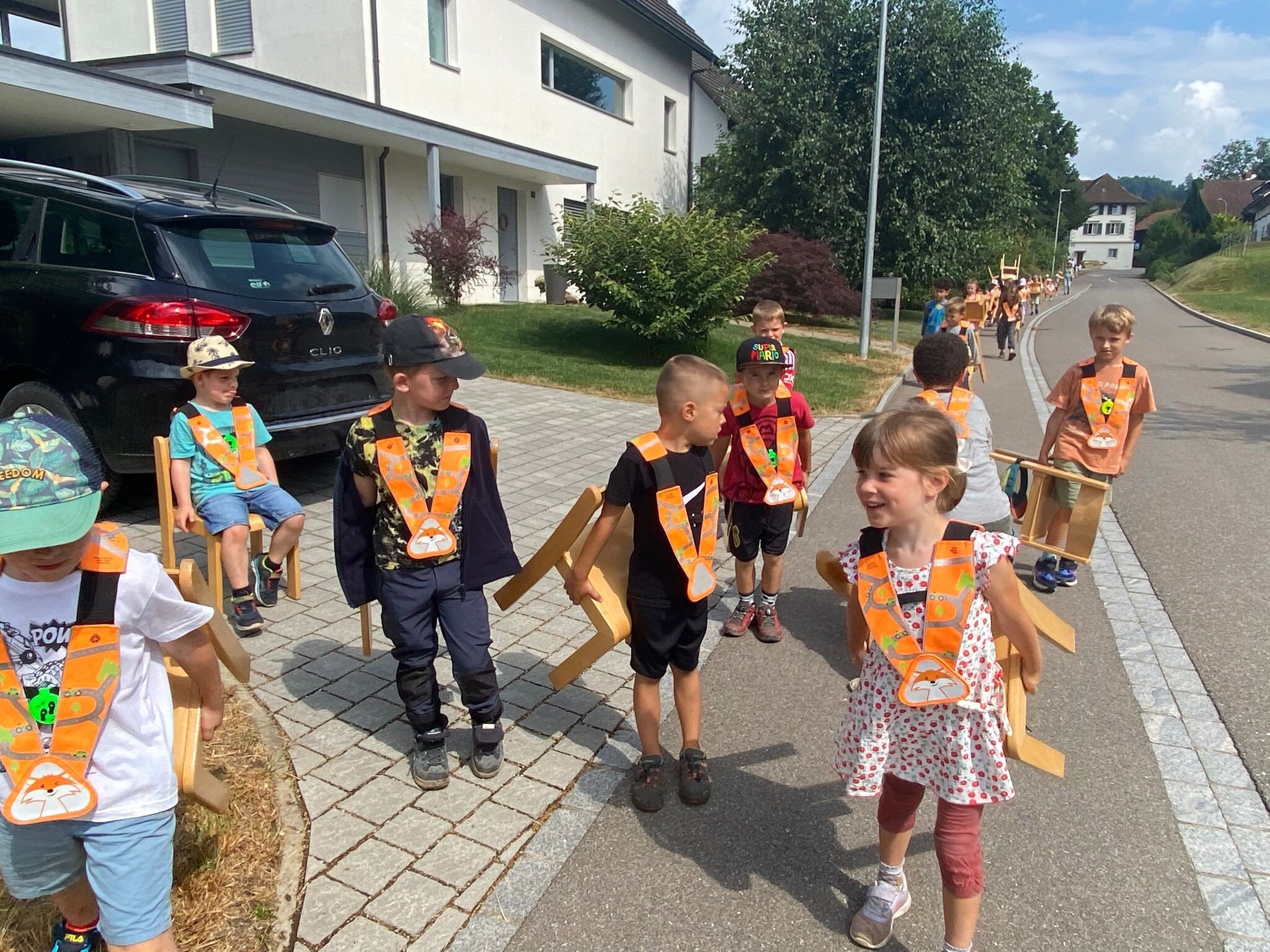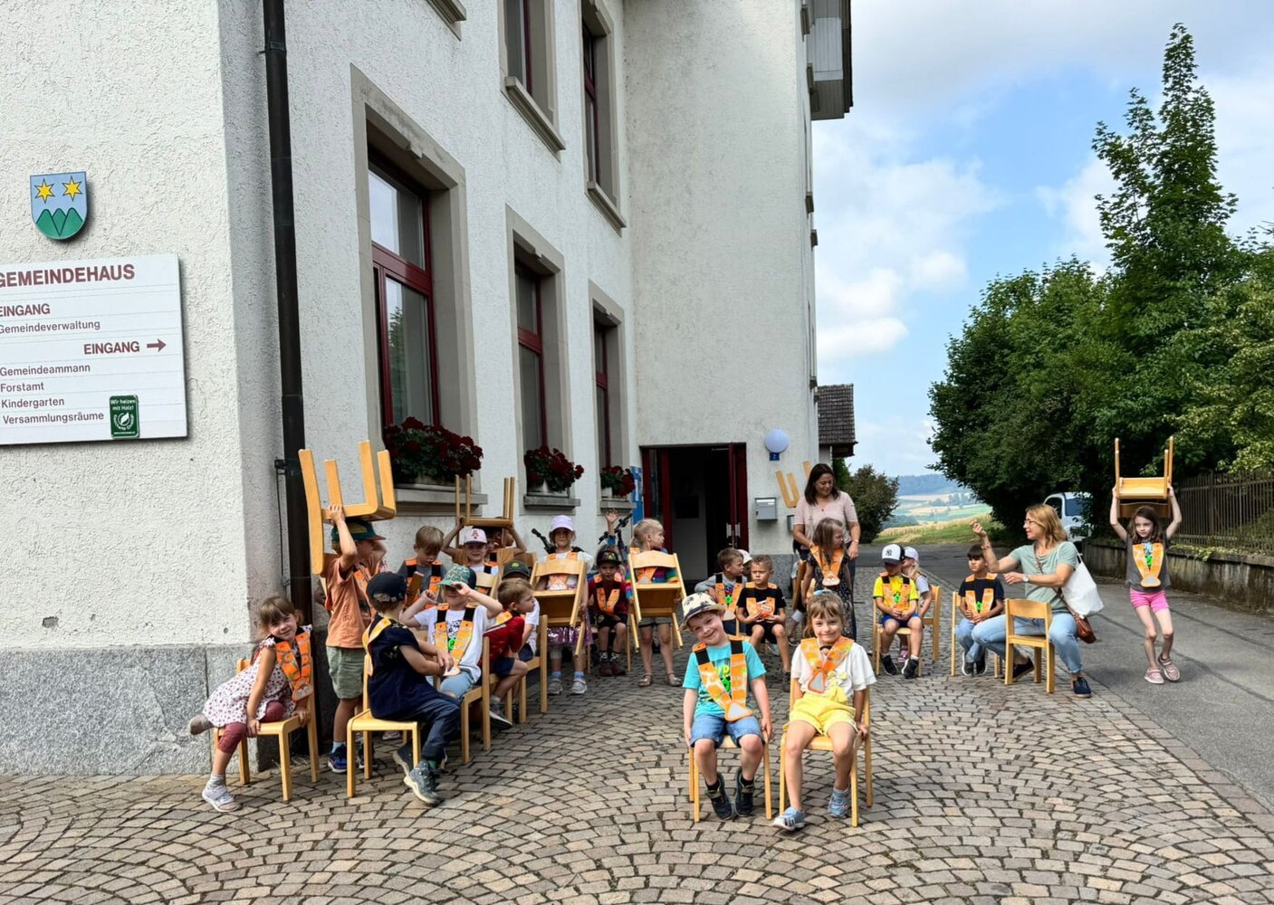 Mit einem besonderen Ritual verabschiedeten sich die Kindergartenkinder vor den Sommerferien von ihrem alten Standort: Gemeinsam trugen sie ihre Stühle durch das Dorf zum neuen Kindergarten. Bereits als 1971 das Schulhaus Aemmert bezogen wurde, durften die damaligen Schülerinnen und Schüler ihre Stühle selbst vom Gemeindehaus hinuntertragen. Ein Ereignis, an welches sich einige Bewohner und Bewohnerinnen aus Schneisingen immer noch erinnern. Während der Sommerferien haben die beiden Kindergärtnerinnen mit tatkräftiger Unterstützung des Hausdienstes und der Schulleiterin den Umzug gestemmt und den neuen Kindergarten liebevoll eingerichtet. Es war viel Arbeit – doch der Einsatz hat sich definitiv gelohnt. Die neuen Räume strahlen Wärme und Geborgenheit aus und laden zum Entdecken, Spielen und Lernen ein. Gerne dürfen Sie sich am Einweihungsfest vom 6. September selbst ein Bild davon machen.