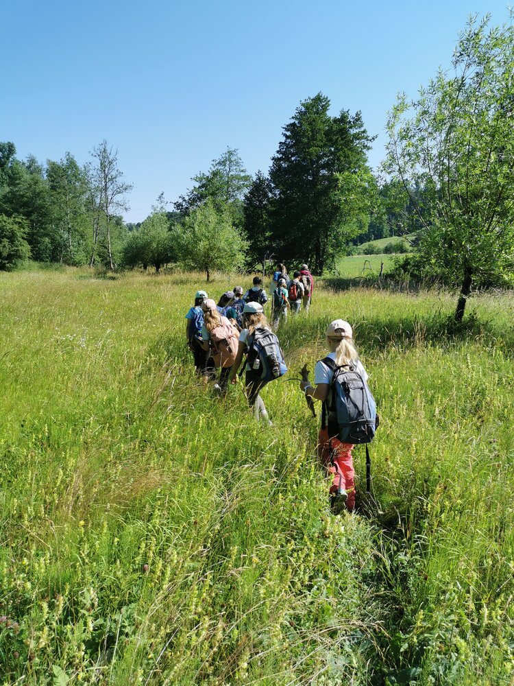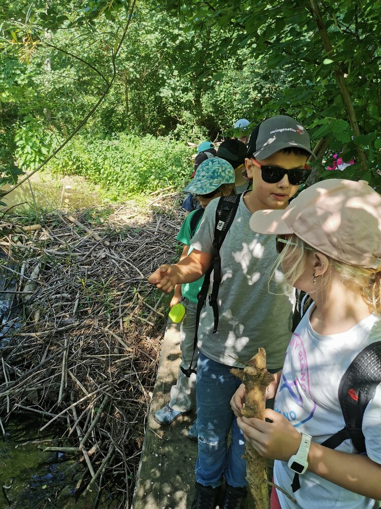 Mit dem Bus fuhren wir nach Fisibach. Nach einer kleinen Wanderung dem Fisibach entlang, hatten wir bei den Biberdämmen eine Führung mit Frau Lütolf vom WWF. Das war mega cool. Sie hat uns ganz viel über den Biber erzählt und einen Biberschädel, eine Biberpfote und auch einen Biberschwanz gezeigt. Es hatte viele lustig angekafelte Bäume. Wir sind auf eine schmale Holzbrücke gestanden. Dort haben wir einen Biberdamm aus der Nähe gesehen, aber keinen Biber. Die sind nachtaktiv. Es hatte etwa 5 Biberrutschen. Dort rutscht der Biber in den Bach. Es war mega cool, aber es war heiss, etwa 28°C. Das blöde war, dass fast kein Wind geweht hat. Wir wollten die ganze Zeit baden gehen, aber wir durften nicht bei den Biberdämmen ins Wasser, weil es ein Naturschutzgebiet war. Die Füsse baden durften wir erst am nächsten Tag. Ein Junge hat einen Baumstamm, welcher vom Biber gefällt wurde, mitgenommen. Er musste den ganzen Tag schwer tragen.