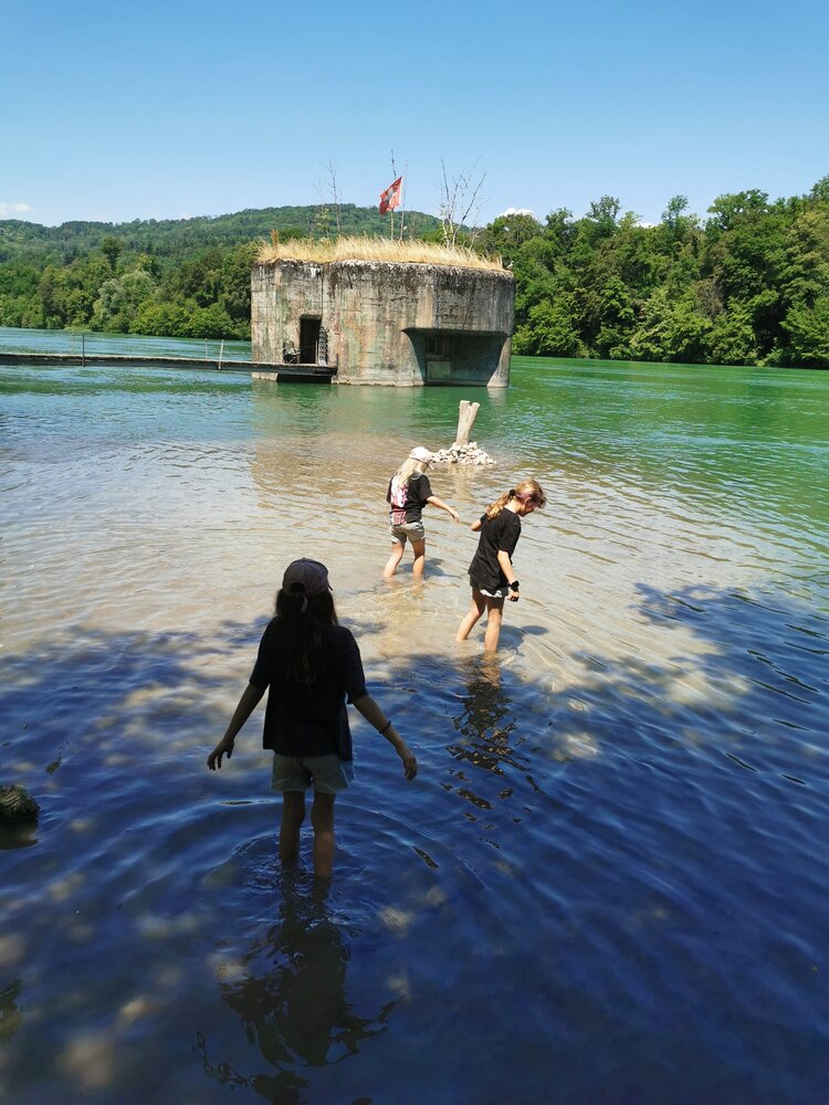 Der Bunker steht im Rhein. Als wir nachher nach Kaiserstuhl gelaufen sind, haben die meisten Brennnesseln erwischt. Wir haben eine Schlangenhaut gefunden. Am Schluss haben wir den Bus fast verpasst, weil wir am falschen Ort gewartet haben. Es war eine mega coole und spannende Abschlussreise.