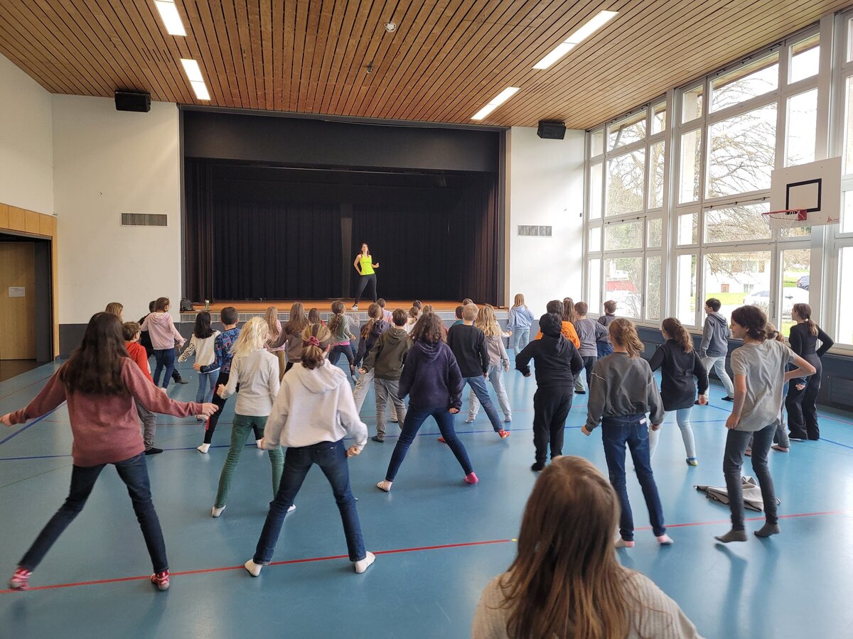 Ein Highlight für Gross und Klein war das gemeinsame Tanzen mit Romina von Rominafit aus Ehrendingen. Sie tanzte je eine Lektion mit den Kindergarten- und Unterstufenkindern und eine mit den 4.-6. Klässler/-innen. Wir danken ihr herzlichst für die anspornenden Stunden. Es war wunderschön, all die strahlenden und begeisterten Kinder zu erleben.