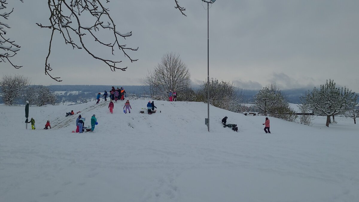 Viele Klassen nutzten Ende November den ersten Schnee als Abwechslung zum üblichen Schulalltag. Es war ein Gaudi zuzusehen, wie die Kinder auf Säcken und kleinen Schlitten den Hang hinunterrutschten, die ersten Schneekunstwerke bauten oder kleine Schneeballschlachten ausfochten.