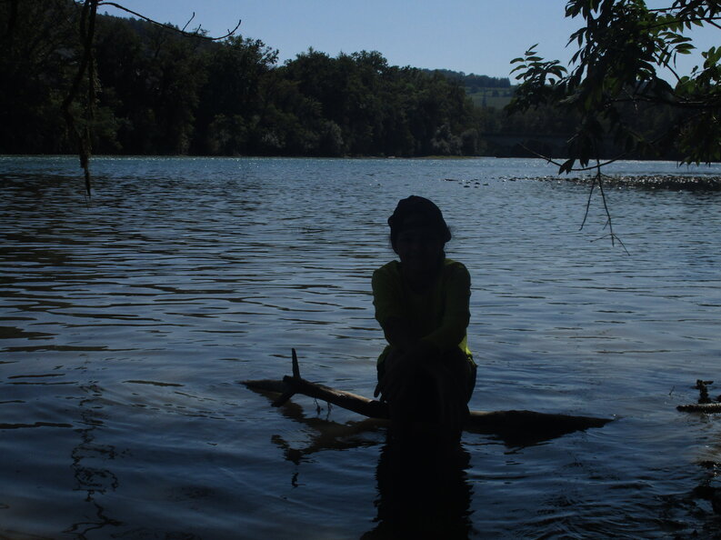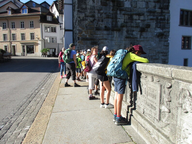 Am Dienstag, 5. September, machten wir, die 5. Klasse, einen Ausflug zum Wasserschloss. Meine Gruppe A hatte zuerst noch Turnen. Wir durften uns aber früher umziehen gehen. Als alle Kinder da waren, hatte ich Flo, den Hund, bemerkt. Er war bestimmt aufgeregt, da so viele Kinder da waren. Wir starteten beim Schulhaus und gingen zur Bushaltestelle Mittelschneisingen. Dort stiegen wir in den Bus und fuhren bis zum Bahnhof Baden. In Baden bestiegen wir den Zug und fuhren bis Brugg. In Brugg spazierten wir durch die Altstadt und überquerten die Aare. Auf der Brücke zeigte uns Frau Köpfli (unsere Lehrerin) eine enge Stelle im Fluss und erklärte uns einiges dazu. Das hat mich sehr interessiert. Kurz nach der Aare ging es steil bergauf, das war schon anstrengend. Wir folgten den gelben Wegweisern und mussten bei einer Abzweigung etwas warten. Beim «Alpenzeiger» assen wir Znüni und genossen die Aussicht. Danach wurde es nochmals recht anstrengend, bis wir beim Wasserschlossblick «Uf em Berg» ankamen und dort auch Mittagspause machten. Frau Köpfli machte mit den Knaben Feuer und schon bald konnten wir essen. Ich baute vor und nach dem Essen mit Lena ein Tipi. Leider wurden wir nicht ganz fertig, aber es machte grossen Spass. Nun ging es weiter im Zickzack den Berg hinab. Bei einem Brunnen sprang Flo hinein. Flo schüttelte sich und wir liefen weiter bis zur Aare. An einer flachen Stelle durften wir ohne Schuhe und Socken ins Wasser gehen. Flo spritzte uns kräftig nass. Das war cool. Die Pause war leider wieder zu kurz, aber wir durften unseren Zug in Turgi nicht verpassen. Ich wäre gerne etwas länger Zug gefahren. Auf dem Ausflug lernte ich, dass das Wasserschloss der Treffpunkt von Aare, Reuss und Limmat ist. Eine Muschel aus der Aare hat mich als Andenken nach Hause begleitet.