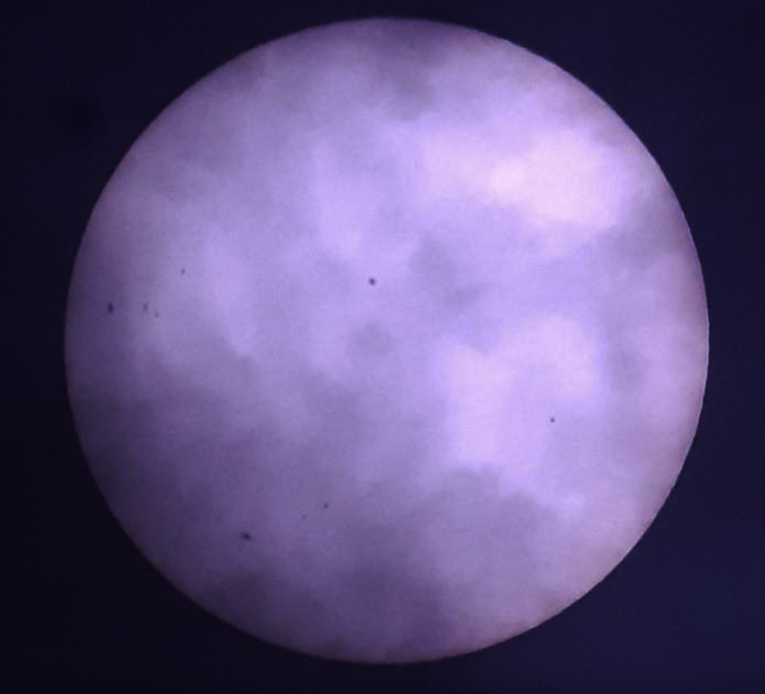 Das Bild der Sonne wurde mit dem Handy durch das Teleskop aufgenommen.