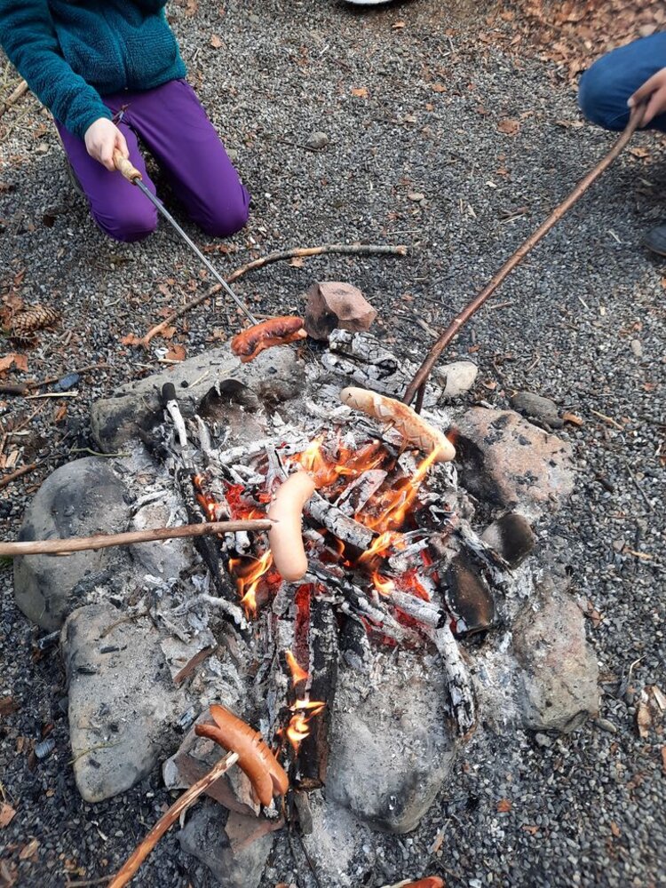 Wir haben feine Marshmellows gemacht, mmmmh. Ein paar Kinder haben geschaut, dass das Feuern nicht ausgeht.