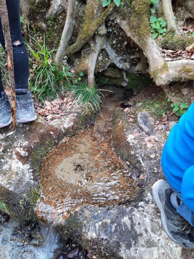 Wir haben eine wunderschöne Quelle gefunden. Sie befindet sich unter einem Baum, es sieht mystisch aus. Dort haben wir die Flaschen gefüllt. Es ist das beste Wasser auf der Welt, es ist wie ein Schmerzmittel. Wenn man es trinkt, wird es gegen die Mitte süss.