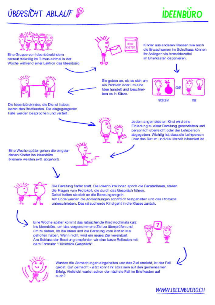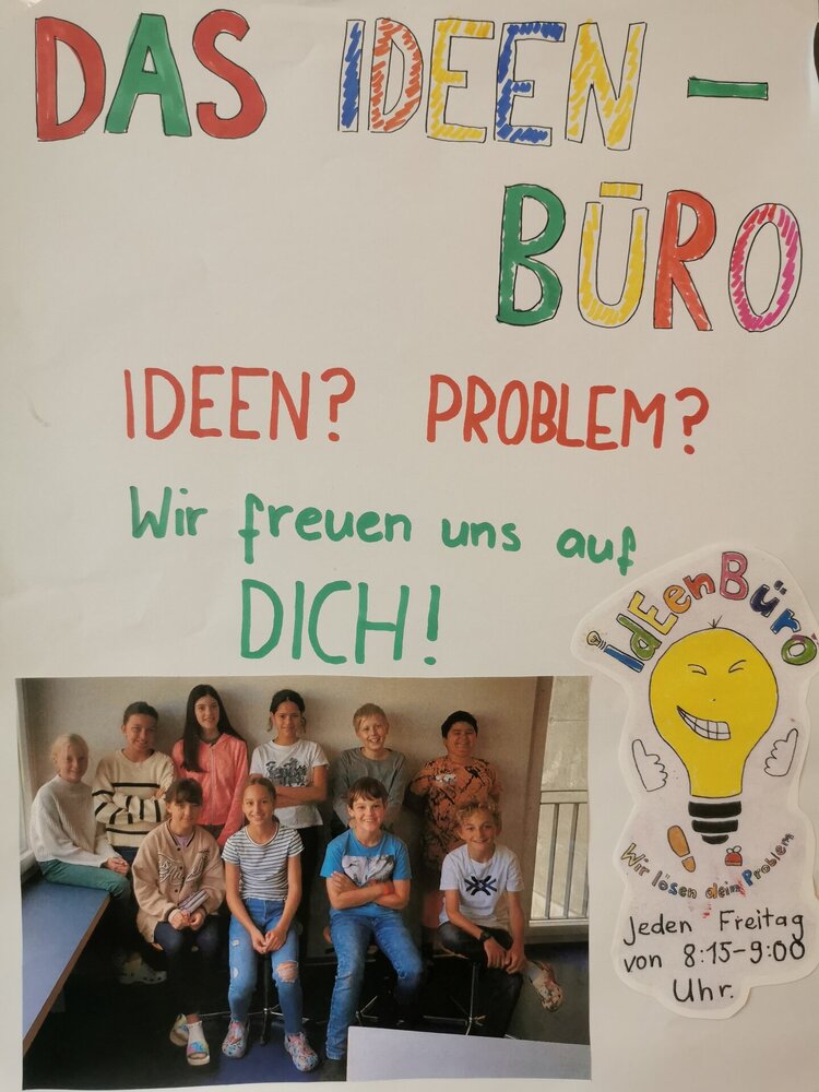 Es freut mich Ihnen mitteilen zu können, dass wir an der Schule Schneisingen ein Ideenbüro eröffnet haben. Das Ideenbüro ist eine Anlaufstelle für Ideen und Probleme aller Art in einer Schule. Dabei beraten grössere Kinder die kleineren. Aufgrund ihrer eigenen Erfahrung sind sie Experten für die Probleme Gleichaltriger oder Jüngerer und finden oft bessere Lösungen als Erwachsene. Im Ideenbüro werden ausgewählte Kinder der 6. Klasse von der Schulsozialarbeiterin ausgebildet, um anderen Schülerinnen und Schülern zu helfen, Konflikte und Missverständnisse zu lösen aber auch, um für ihre Anliegen und Ideen ein offenes Ohr zu haben und sie bei deren Umsetzung zu unterstützen. Im Schulhaus hängt ein Briefkasten, in welchen die Kinder und auch Erwachsene ihre Anliegen einwerfen können. Das Büro ist jeweils am Freitag von 8.15-9.00 Uhr geöffnet. Auf unserer Homepage finden Sie weitere Informationen und ein Video zum Ideenbüro. Es freut uns sehr, dass wir mit dem Ideenbüro etwas geschaffen haben, bei dem die Kinder selbst etwas «bewegen» können und sind schon ganz gespannt, welche Ideen sie umsetzen werden.