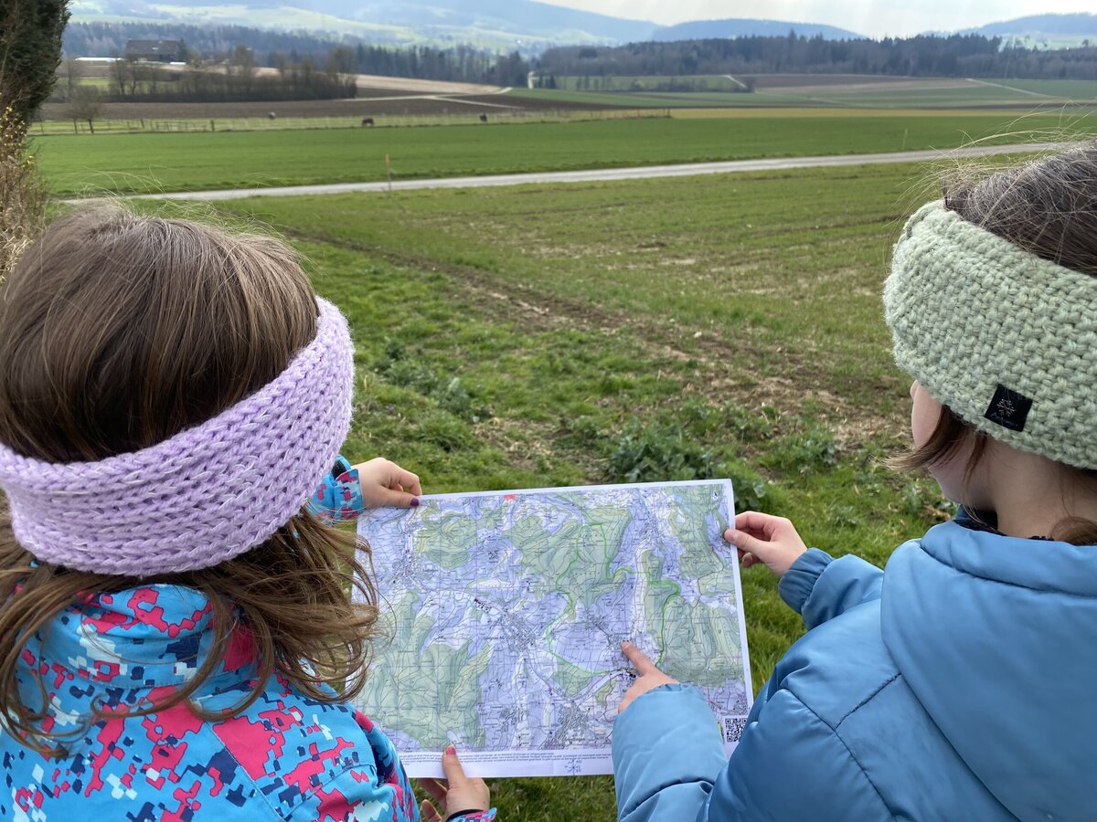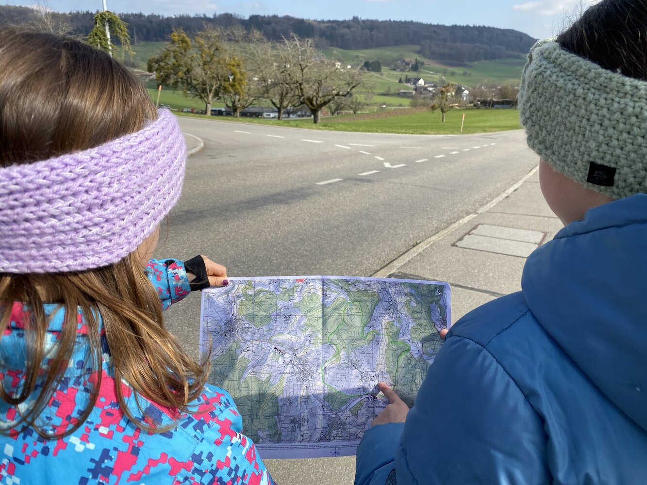 Wir haben zusammen Karten von Schneisingen gelesen und die Höhenlinien und Kartensymbole kennengelernt. Jeder Schüler zeichnete eine Karte von seinem Schulweg. In Zweiergruppen haben wir mit einer Wegbeschreibung ein Ziel finden müssen, das einmal bei der Holzschreinerei Lehmann und einmal bei der Kreuzung der Schule war. Das hat den meisten Spass gemacht, insbesondere der schnellsten Gruppe, die Süsses gewinnen konnte. Wir haben Videos zur Erklärung angeschaut und Fragen auf einem Blatt beantwortet. Auch die iPads der Schule durften wir benutzen. Wir sind auf den Pausenplatz gegangen und haben uns die Himmelsrichtungen angeschaut und anschliessend mit Kreide Windrosen gezeichnet. Zusammen haben wir auf der Rennbahn ebenfalls ein Geländemodell von Schneisingen gebaut.