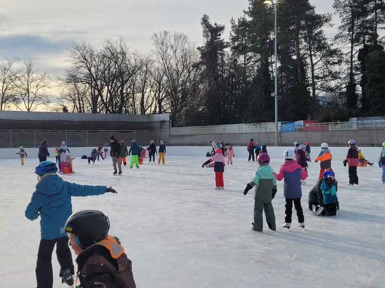 Die ganze Schule hat sich aufs Glatteis gewagt. Es war ein gelungener Schlittschuhmorgen im Tägi und sehr eindrücklich, wie die Kinder auf dem ungewohnten Terrain ihre Kreise zogen oder sich ein spannendes Hockeyspiel lieferten.