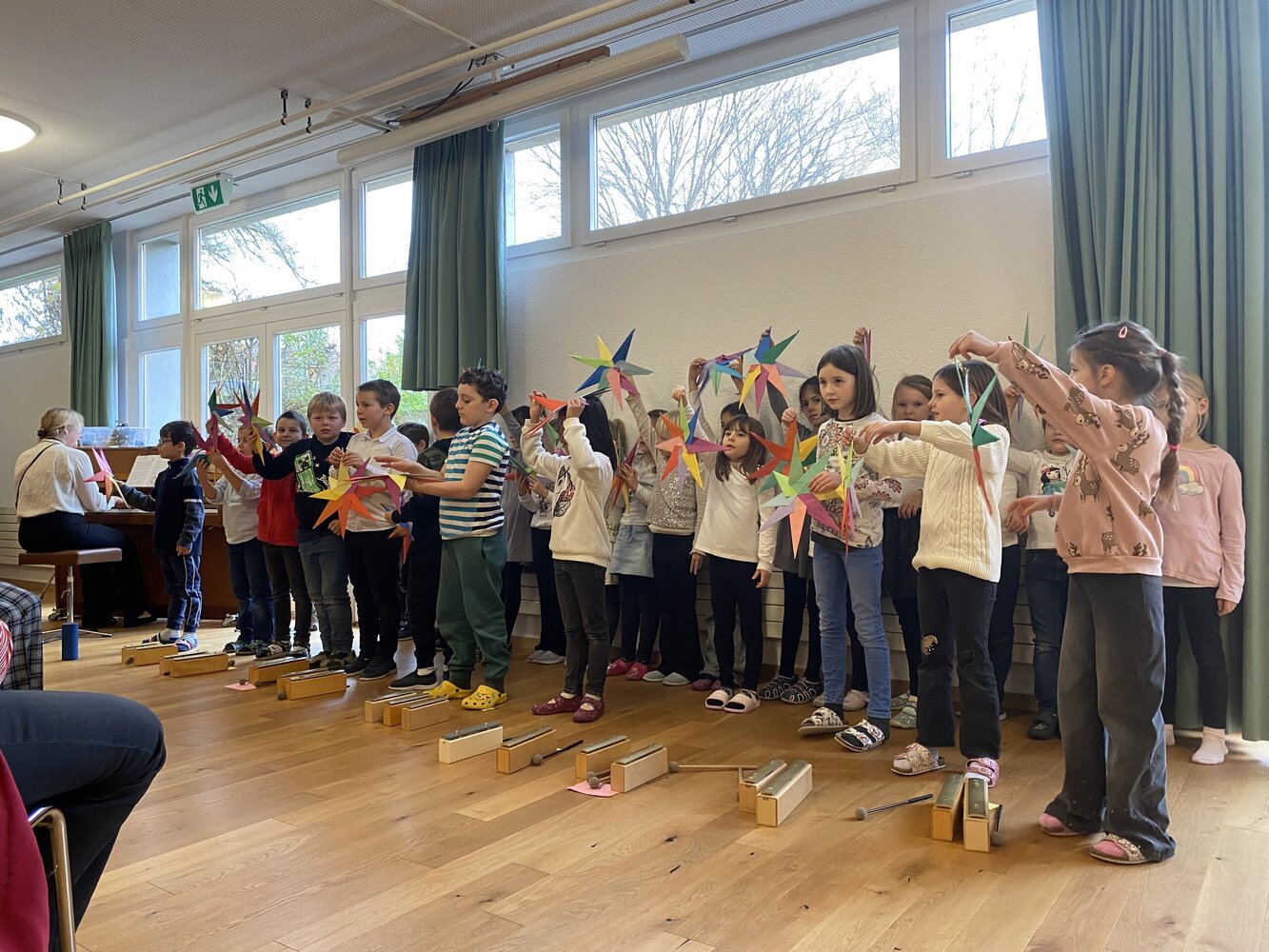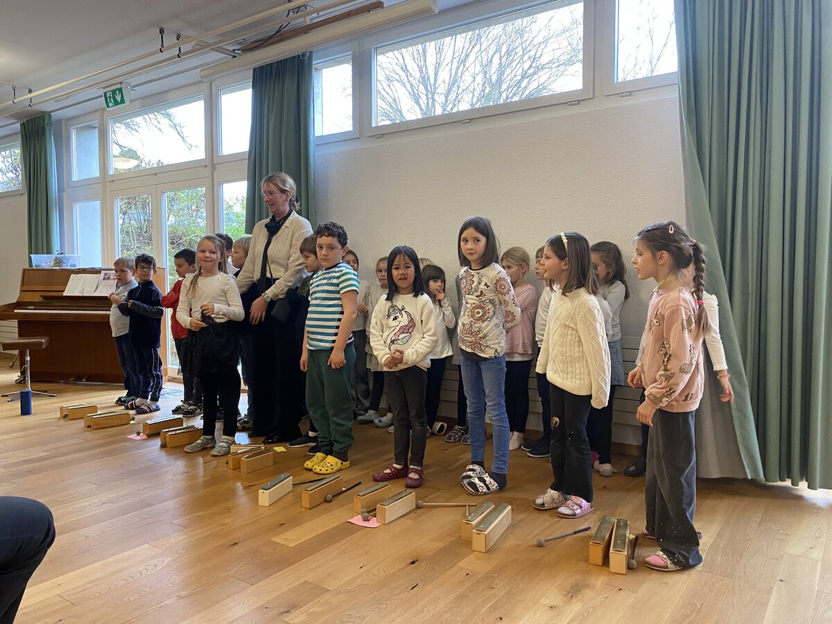 Besonders ergreifend war das Lied von Peter Räber „Chum mir wei äs Liecht azünde“, das die Kinder mit Klangstäben begleiteten. Der melodische Gesang und die sanften Klänge der Instrumente zauberten eine besinnliche Atmosphäre, die einige der Anwesenden zu Tränen rührte. Es war ein Moment der Gemeinschaft und des Miteinanders.