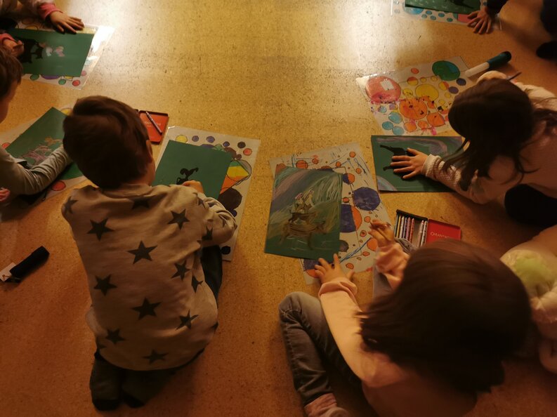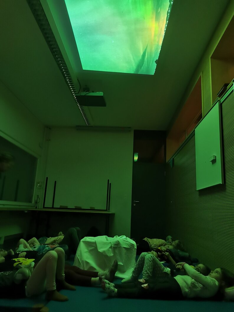 Danach durften die Kinder in altersdurchmischten Gruppen verschiedene Räume besuchen. In Höhlen und mit Taschenlampen konnten die Kinder selber lesen, Geschichten hören oder Rätsel lösen.