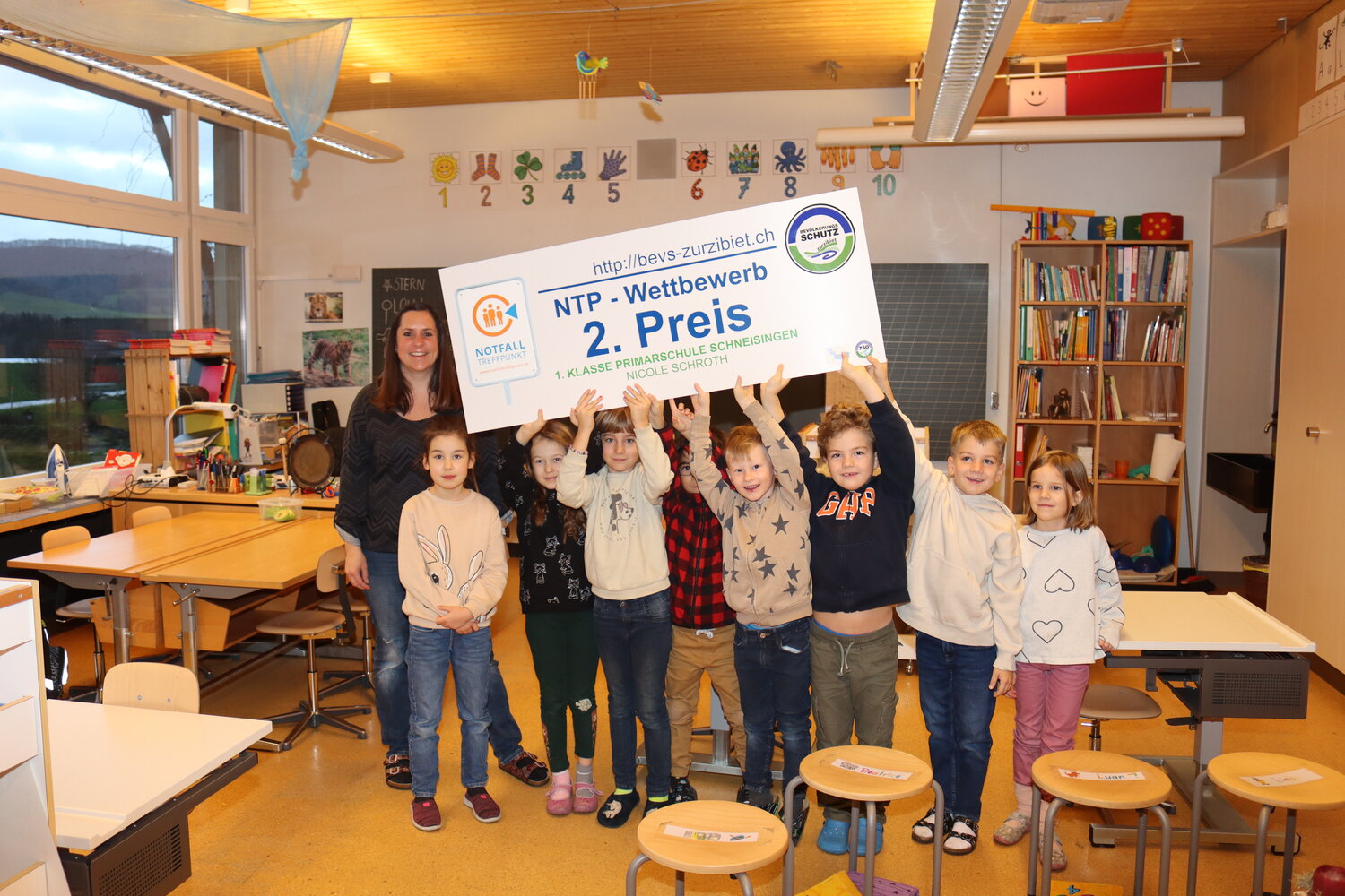Die 1. Klasse aus Schneisingen hat den 2. Preis gewonnen und darf noch in diesem Schuljahr die Stützpunktfeuerwehr Zurzach und den Kommandoposten der Zivilschutzorganisation Zurzibiet besichtigen.