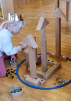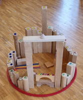 Unser diesjähriges Jahresmotto der Schule «Chopf, Herz, Hand, mir boued mitenand.» setzen wir als Vertiefung nach dem einführenden Märchenritual um. Lustvoll bauen die Kinder jeweils zu dritt ein prächtiges Schloss, es wird gemeinsam geplant und gestaltet. Zufrieden und stolz posieren die Kinder für ein Foto, bevor es wieder ans Aufräumen geht.