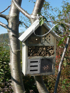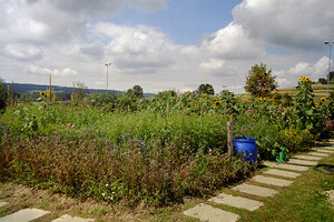 Die ehemals sterile Rasenfläche hat einer Naturwiese Platz gemacht. Die neu gepflanzten Niederstammobstbäume beherbergen etliche gefiederte Gäste in den Nistkasten.