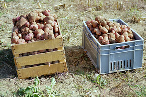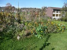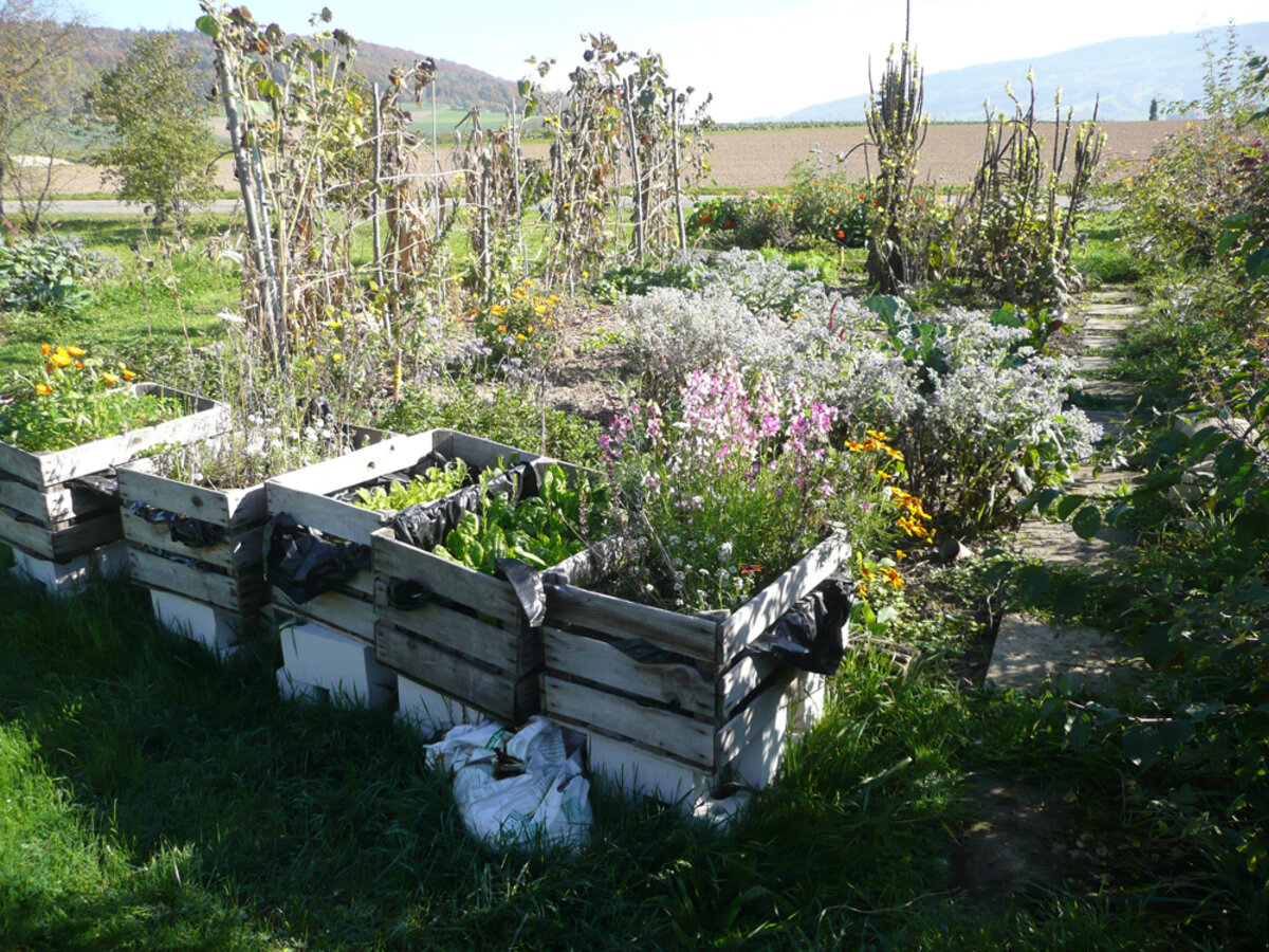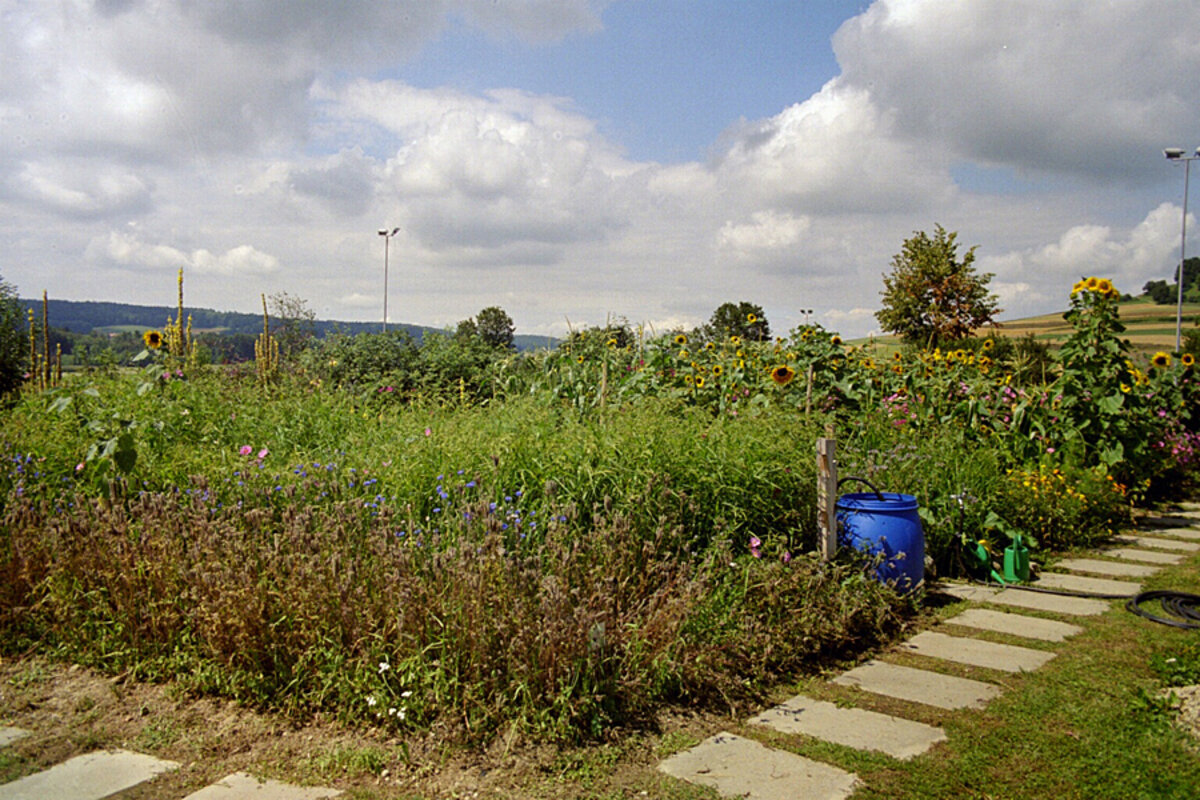 Das Kernstück unserer Anlage ist ein ca. 50 Quadratmeter grosser Projektgarten. Hier werden von allen Klassen Jahr für Jahr andere Projekte realisiert: Sonnenblumen werden gezogen, Kartoffeln geerntet, Bohnen, Mais und Kürbisse gezüchtet, Winterweizen zu Mehl verarbeitet, Regenwürmer in ihrer natürlichen Umgebung beobachtet, im Feuerloch Töpferarbeiten gebrannt und.. oder......